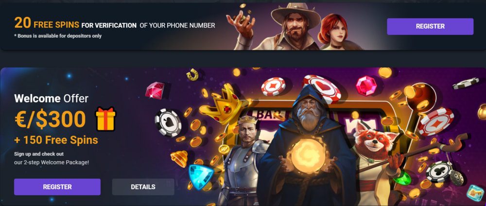 Sellele lisaks saad nautida kuni 300⏠suurust tervitusboonust koos 150 tasuta spinniga oma esimese kahe sissemakse jooksul. Esimesel sissemaksel saad kasutada 100% boonust 100⏠ulatuses ning selle kingitusena saad kaasa 100 tasuta spinni. Teisel sissemaksel saad veel 50% boonust 200⏠ulatuses ning lisaks veel 50 tasuta spinni.