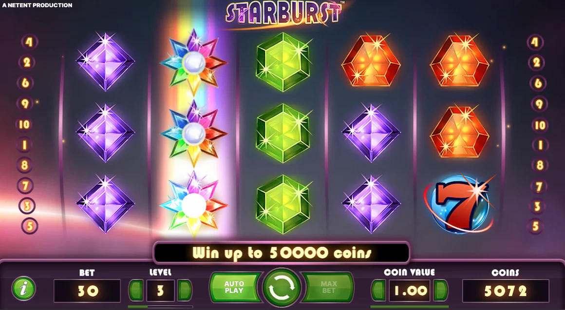 Kopš spēļu automāta Starburst izlaišanas 2012. gadā, tas ātri kļuvis par vienu no populārākajiem NetEnt izstrādājumiem online kazino. Tas piesaista ar vienkāršo spēli un pievilcīgu vizuālo noformējumu. Tas ir 5 ruļļu un 10 izmaksu līniju spēļu automāts, kas nav vērsts uz trakām funkcijām un griezieniem, tā vietā koncentrējoties uz relaksējošu spēlēšanas pieredzi, vienlaikus, ļaujot Jums uzvarēt.